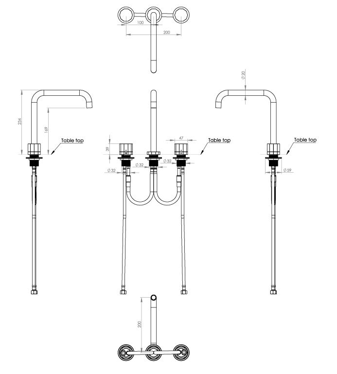 3-huls, 2-grebsarmatur, ø200-tud