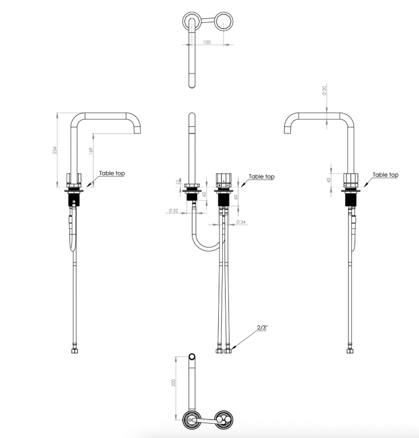 Toni Déca køkkenarmatur, krom L-tud 200mm