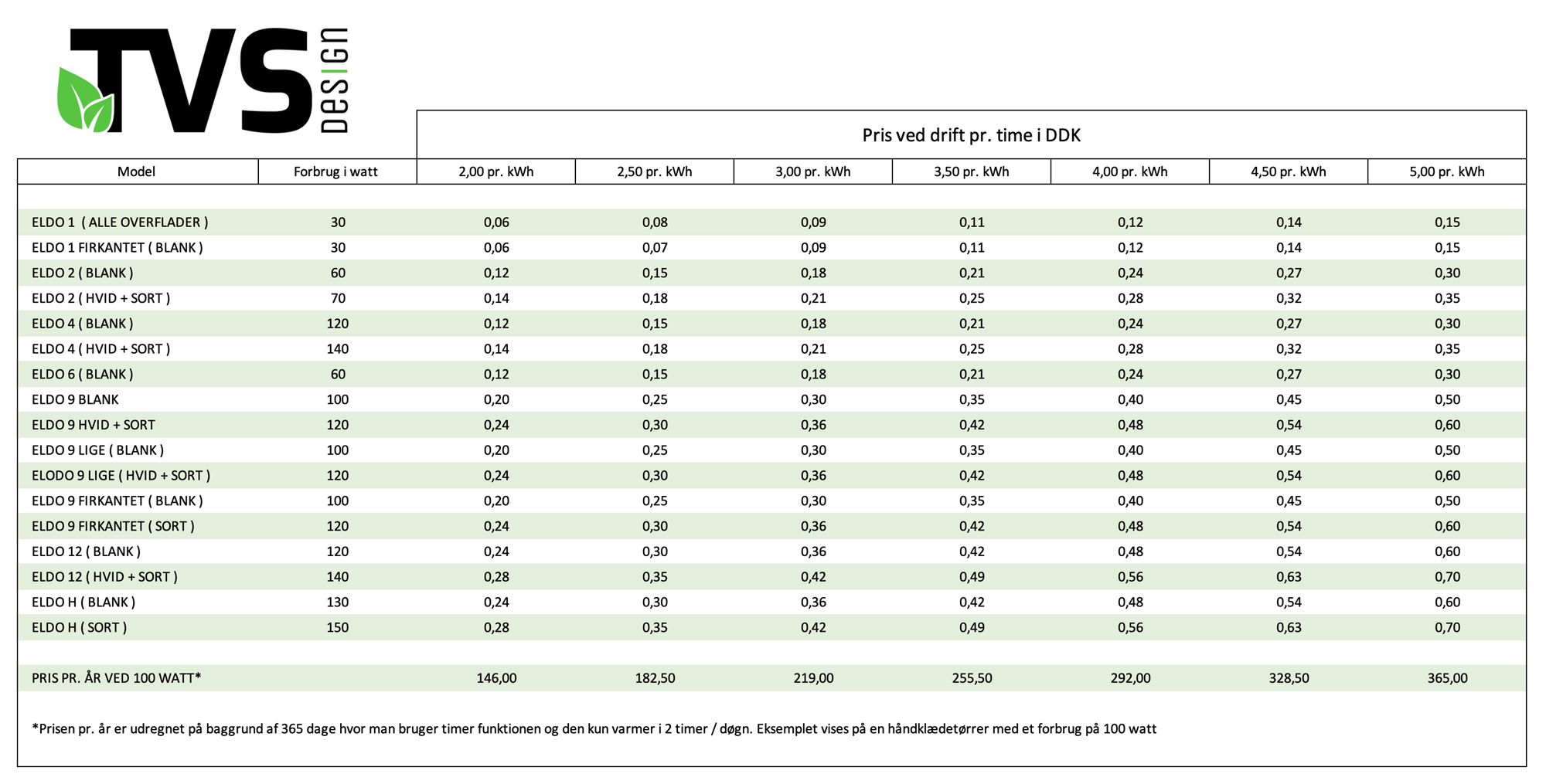 Den elegante ELDO håndklædetørrer er funktionel, og har indbyggede timer, der gør den økonomisk i brug og god for miljøet. Den indbyggede timerfunktion gør det muligt at vælge, at tørreren skal slukke efter 2 eller 4 timer, så den ikke kører hele dagen.