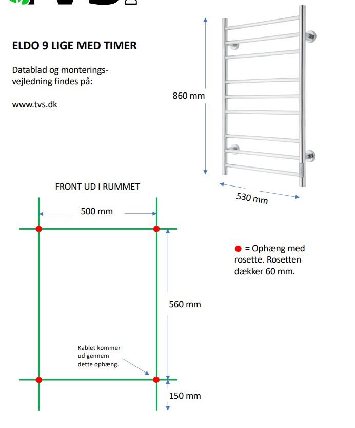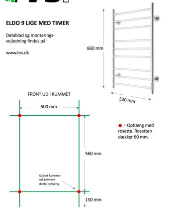 En TVS ELDO håndklædevarmer er desuden nem at montere, og der skal ikke tilkøbes yderligere tilbehør i form at varmelegeme,ventiler mv. Det er "plug & play".