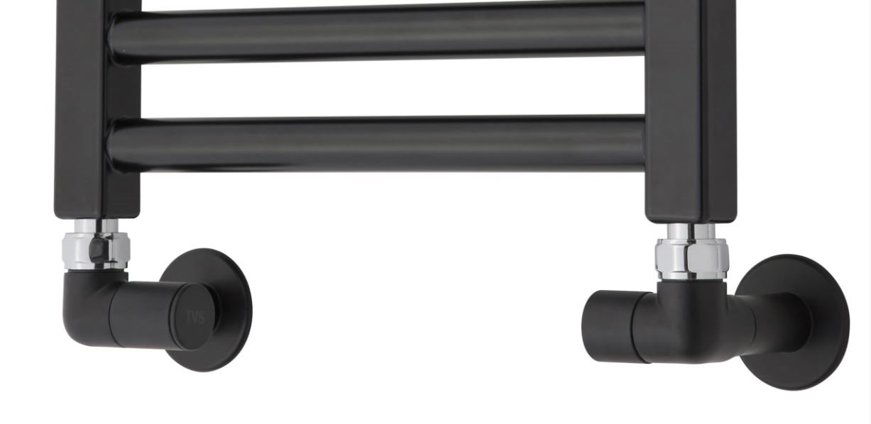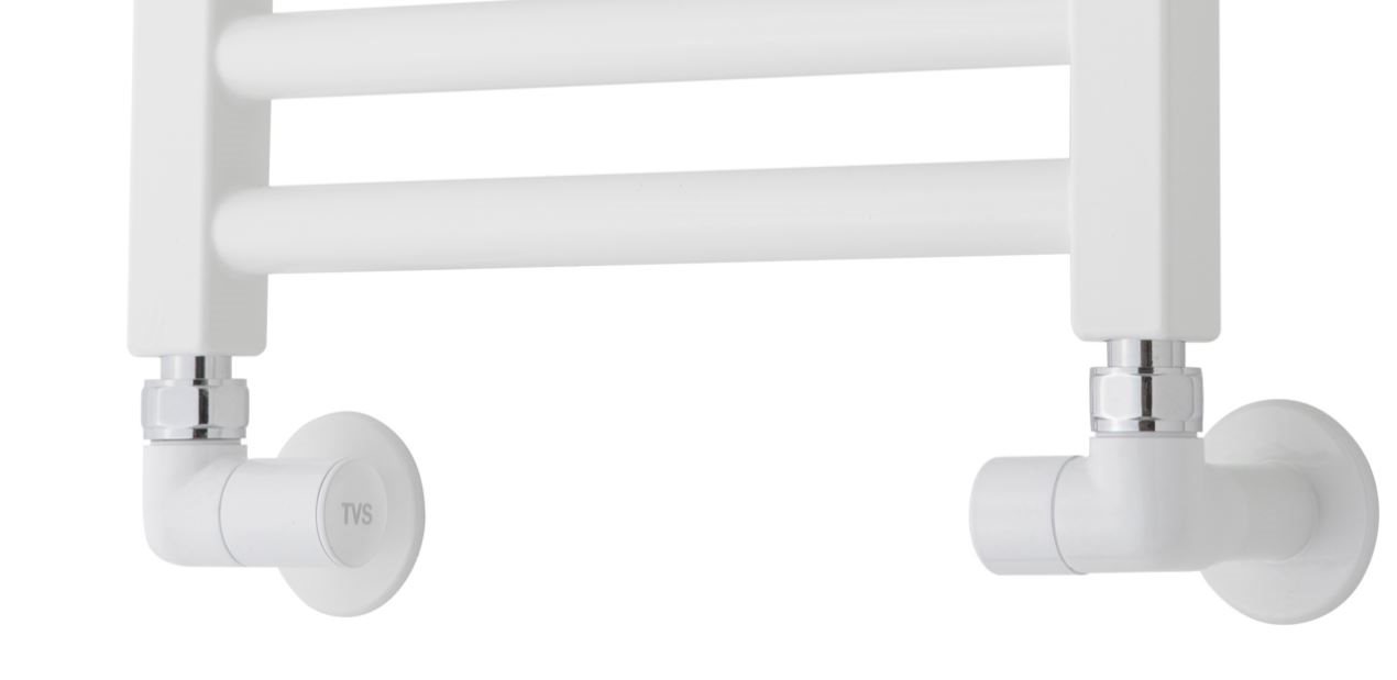 TVS Hjørnevinkel ventilsæt  - Vælg mellem farverne: Krom, hvid, sort og børstet stål.