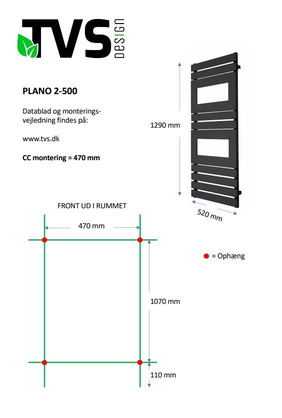 TVS PLANO håndklædetørrer 1290x520mm, Sort