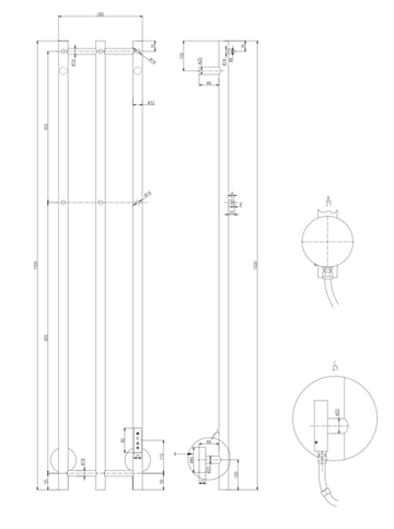TVS Plus 3 El-håndklædetørrer med timer og Wifi 1500 x 280 mm, Hvid