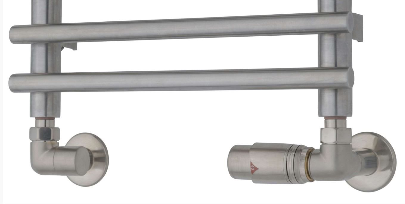 TVS vinkelløbende returventilsæt med termostat i børstet rustfri
