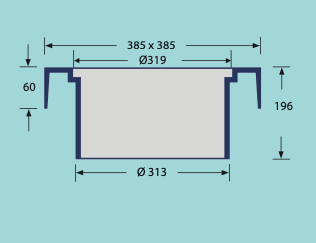 Ulefos 315 x 196 mm firkantet fast karm med dæksel 12,5t