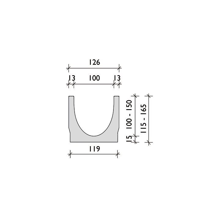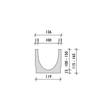 Ulefos Filcoten LIGHT udendørs afløbsrende 12,6 x 100 cm uden rist, Belastning op til 25 ton