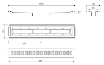 Unidrain Armatur, ramme og rist til vinyl model 1000 til bruseniche uden faste vægge