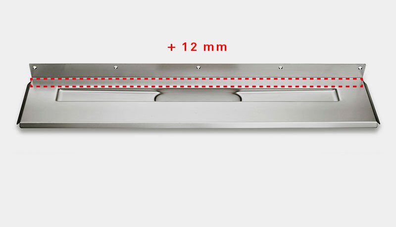 Bagflangen er rykket 12 mm bagud, så det passer til 15 – 20 mm vægfliser + fliseklæb + vådrumsmembran.