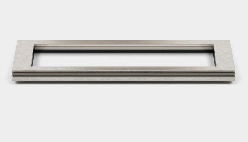 Denne fritliggende ramme er i børstet rustfrit stål, dette er med til at understrege gulvafløbets eksklusive design.