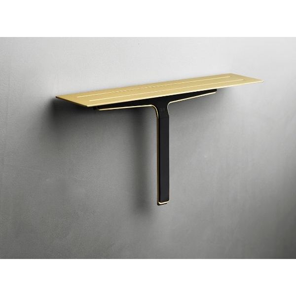 Sæbehylde med magnetisk ophæng til bruseskraberen. Hylden er produceret i forstærket stålplade med spor, der dræner vandet af pladen. Rundt i kanten er lasergraveret en tynd ”antislip” barriere, som hjælper med at shampoo og andre badprodukter ikke glider af hylden, når den er våd. Bruseskraberen består af to dele – et højkvalitets silikoneemne båret i en forstærket stålramme. Skraberen er monteret med silikone bumpere i enderne, hvilket beskytter fliser og andre overflader mod skrammer.