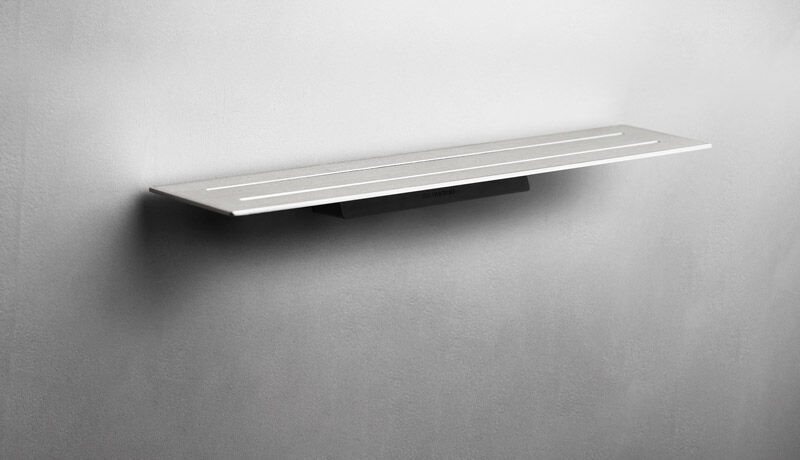 Sæbehylde Reframe børstet stål. Hylde i forstærket stålplade med tynde riller, som leder vandet væk, og en anti-slip barriere holder tingene på plads. Skruer, beslag og Unbraco-nøgle medfølger. Bruseskraber kan tilkøbes. Hylden er klargjort til bruseskraber, der diskret placeres under hylden på det magnetisk beslag.