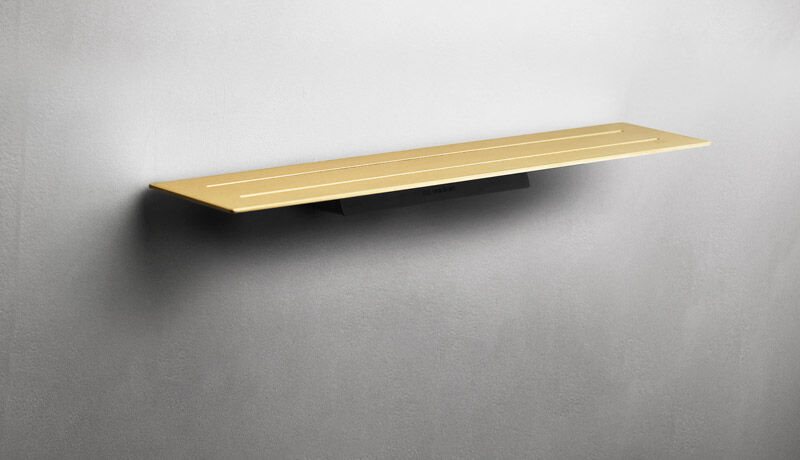 Sæbehylde Reframe børstet stål. Hylde i forstærket stålplade med tynde riller, som leder vandet væk, og en anti-slip barriere holder tingene på plads. Skruer, beslag og Unbraco-nøgle medfølger. Bruseskraber kan tilkøbes. Hylden er klargjort til bruseskraber, der diskret placeres under hylden på det magnetisk beslag.