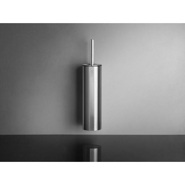 Toiletbørste i børstet rustfrit stål til væg med indre plastikbeholder, der er udformet med en stænkkrave, som går udover den ydre beholder, således der ikke kommer bakterier ind mellem de to beholdere. Den indre beholder er forsynet med en 'tap', så den kan tømmes uden man kommer i kontakt med bakterier. Væghængt model. Børstehovedet kan skiftes.