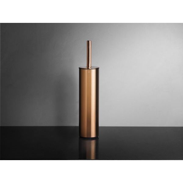 Toiletbørste i kobber med indre plastikbeholder, der er udformet med en stænkkrave, som går udover den ydre beholder, således der ikke kommer bakterier ind mellem de to beholdere. Den indre beholder er forsynet med en 'tap', så den kan tømmes uden man kommer i kontakt med bakterier. Vælg mellem en væghængt model og en gulvmodel. Børstehovedet kan skiftes.