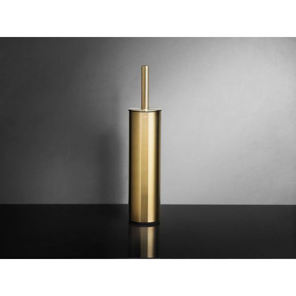 Toiletbørste i messing med indre plastikbeholder, der er udformet med en stænkkrave, som går udover den ydre beholder, således der ikke kommer bakterier ind mellem de to beholdere. Den indre beholder er forsynet med en 'tap', så den kan tømmes uden man kommer i kontakt med bakterier. Vælg mellem en væghængt model og en gulvmodel. Børstehovedet kan skiftes.