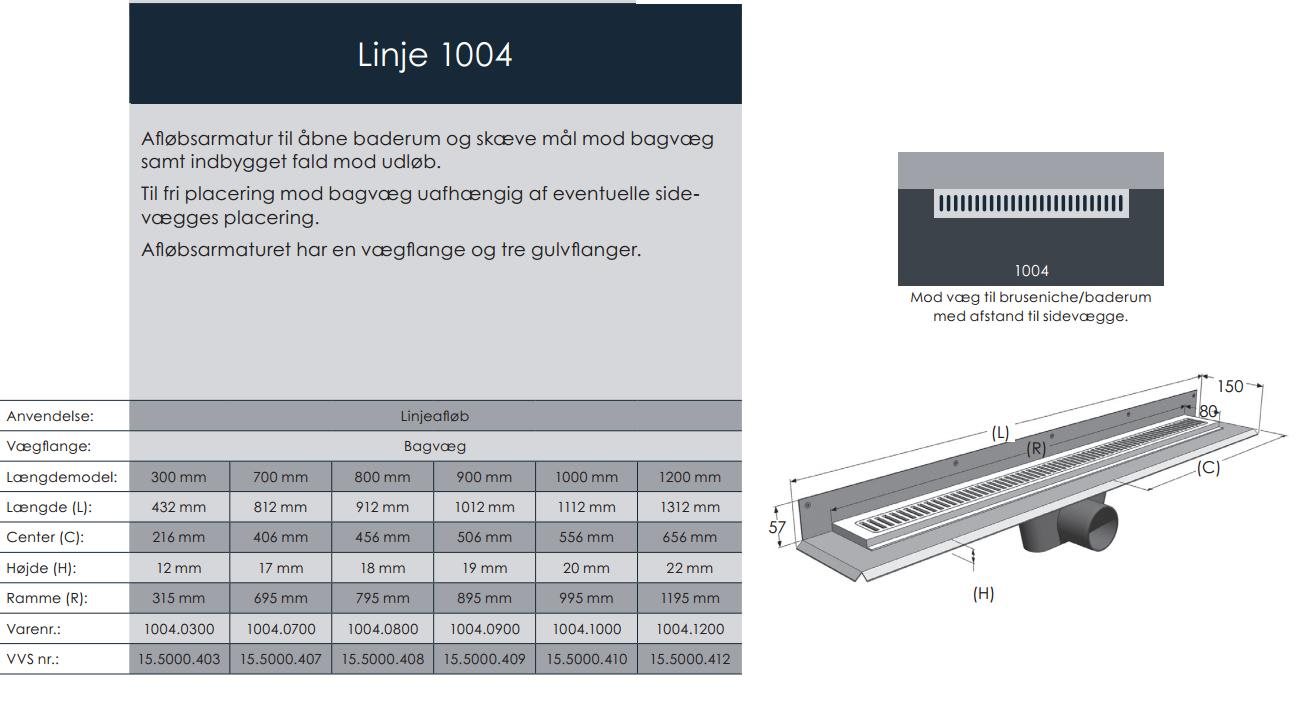 Unidrain 1004 afløbsarmatur er til placering mod en bagvæg - leveres uden sideflanger.