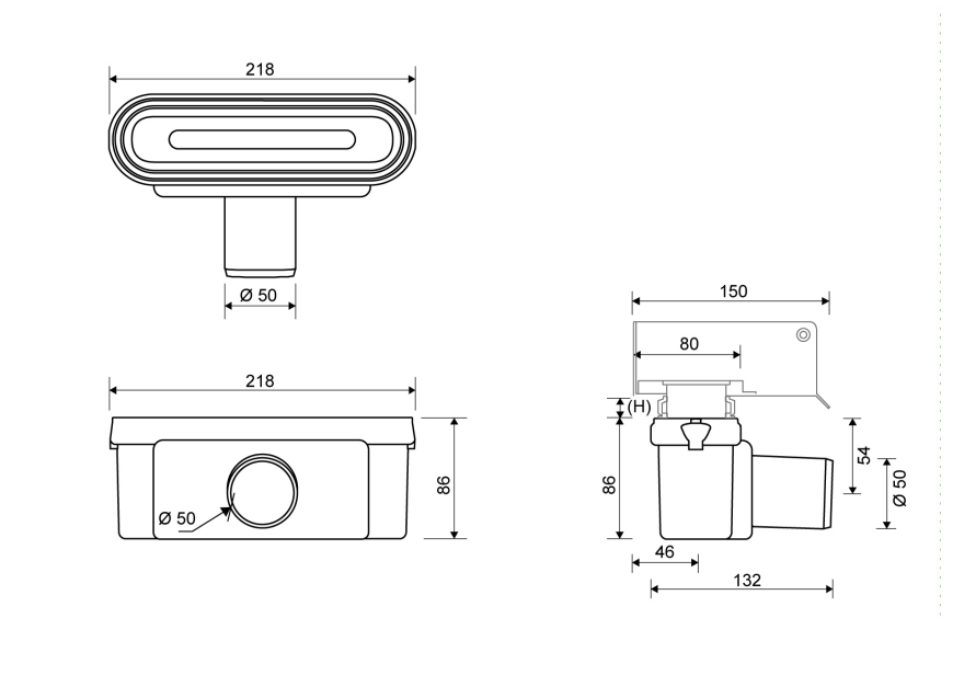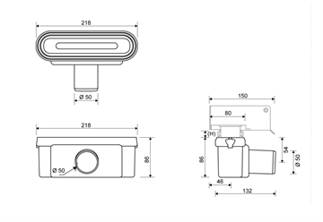 Unidrain Udløbshus med vandret udløb Ø50 mm med vandlås.