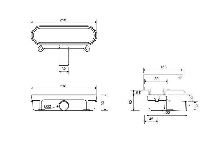 Unidrain Udløbshus Ø32 mm vandret uden sideudløb og vandlås