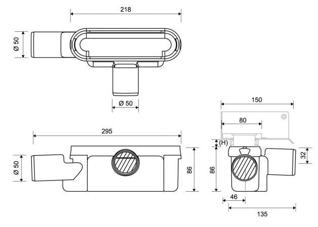 Kan vendes 180 grader ved behov for højre- eller venstrerettet udløb. Højere udløb for bedre fald. Fjern prop fra den valgte udløbsretning.