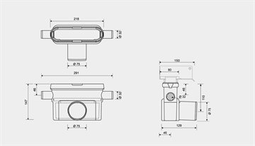 Unidrain udløbshus Ø75 vandret udløb med et sideindløb