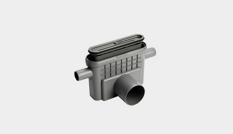 – Skubbes vandlåsen ned i udløbshuset, vil den enhed som tilsluttes sidestudsene være dækket af den medfølgende vandlås og det er ikke nødvendigt med en ekstern vandlås.