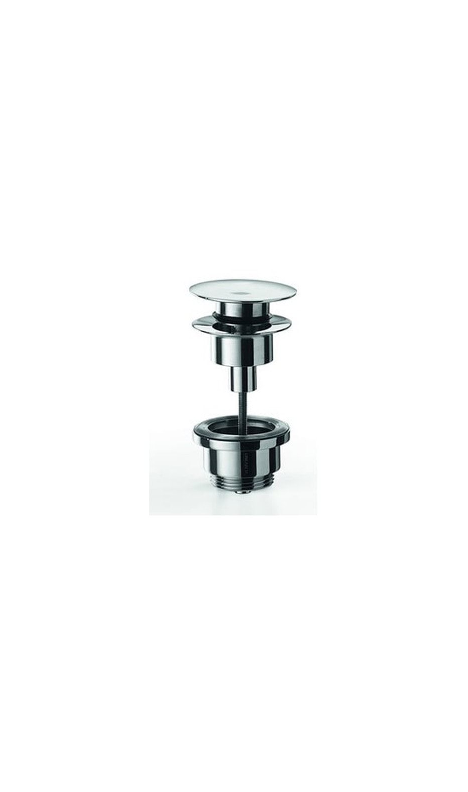 Universal klik bundventil i krom, der åbner og lukker ved let tryk på kappen.