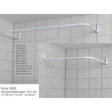 Erica2000 Universalstangen er justerbar, og kan varieres i 12 forskellige versioner. Bruseforhængsstangen monteres uden loftstøtte, og kan, trods det, bære helt op til 25 kilo på det skrøbeligste punkt, som er det frithængende hjørne.