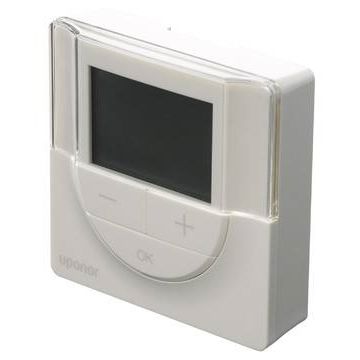 Programmerbar ledningsført termostat med display. Anvendes med, Uponor Smatrix ledningsført kontrolenhed X-145 BUS 6X Indeholder, montagebeslag. Kan anvendes med ekstern føler: max., min. gulvtemperatur, fjern- eller udendørsføler