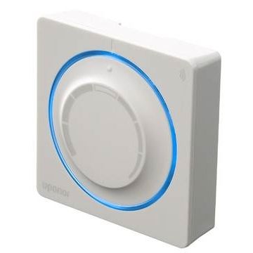 Trådløs termostat med drejeskive og skala, led belysning ved aktivering. Anvendes med Uponor Smatrix kontrolenhed X-165 6X. Indeholder batterier og montagebeslag.