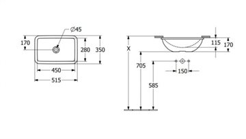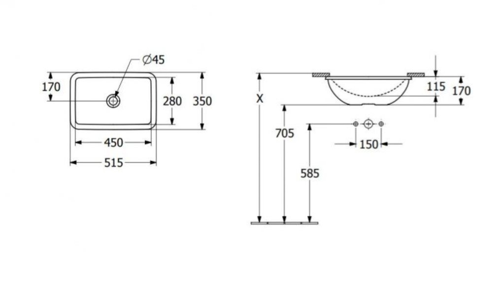 V&B Loop & Friends 45 underlimningsvask - 515x350 mm med Ceramicplus