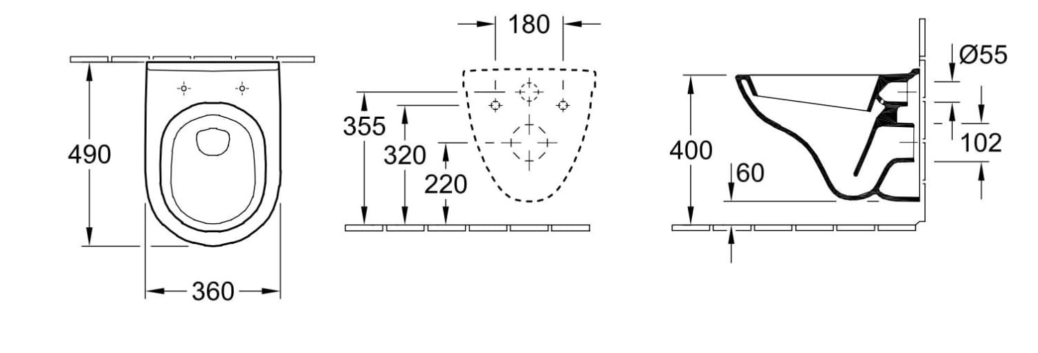 Villeroy & Boch O.Novo Compact Væghængt toilet m/Ceramicplus & Toiletsæde 490x360 mm