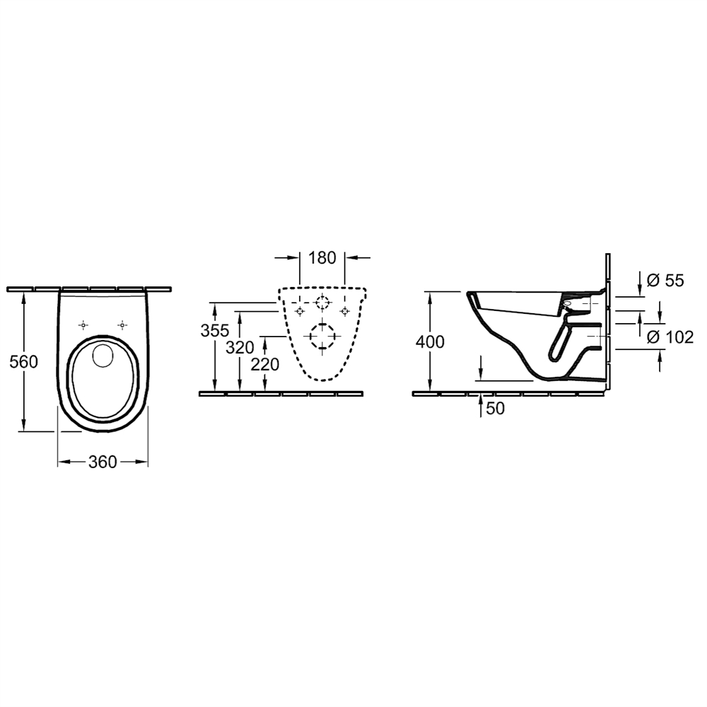 - Villeroy & Boch O.Novo Compact væghængt toilet med Softclose sæde - 490x360 mm.