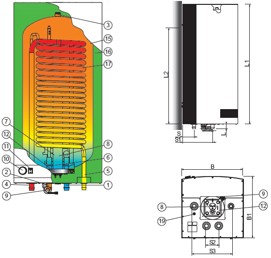 Beholderen er forsynet med el-varmelegeme og en specialudviklet varmespiral, som giver højeffektiv opvarmning af brugsvandet. Det betyder, at der altid er masser af varmt vand til rådighed.