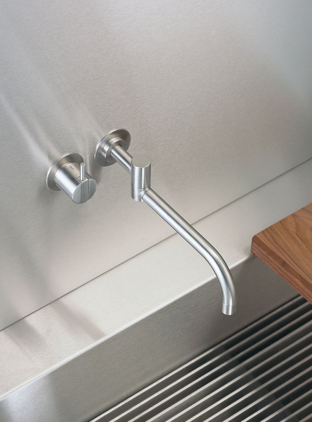 Vola 132 køkken vandhane er af messing, enkelte dele af rustfri stål (afhængig af den valgte overflade), og de særligt udsatte dele i armaturet er fremstillet i afzinkningsfri messing, der sikrer mod tæring af materialet. Delene slibes og poleres, og resultatet er et slutprodukt af usædvanlig høj kvalitet med en meget flot finish. Armaturet leveres med ½" - 15mm kompressionskoblinger og lækagesikringsboks til PEX-rør. Den dobbelte svingtud gør, at vandstrålen næsten kan nå rundt i alle hjørner af vasken.