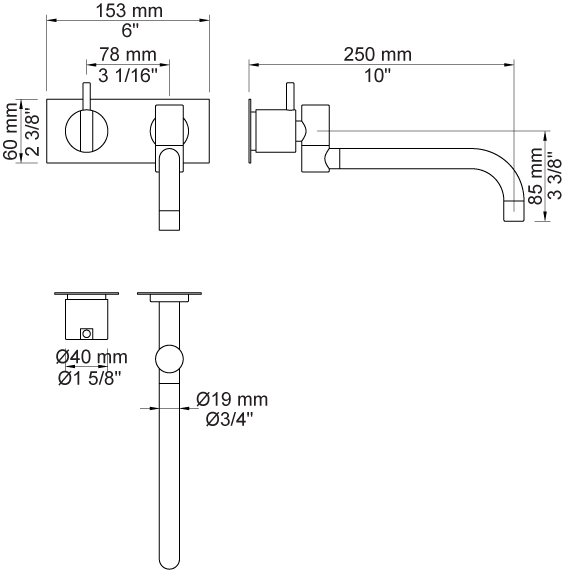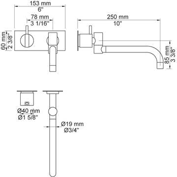 132AP = Greb NR28, 250 mm dobbelt svingbar tud 030 med vandbesparende luftindblander, to-hulsplade 60 x 153 mm 3002