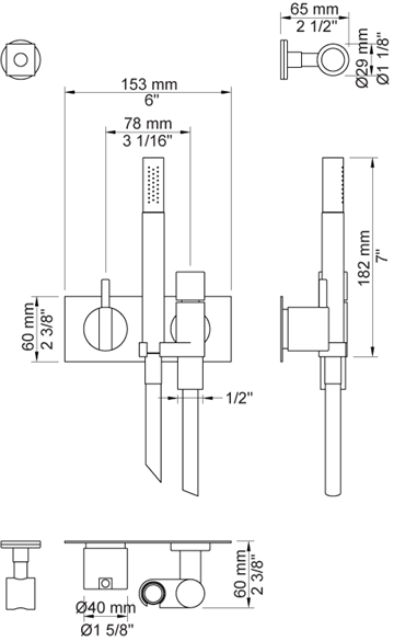 Vola model 172T9 et-grebsblander til indbygning er med håndbruser, holder og rosetter.