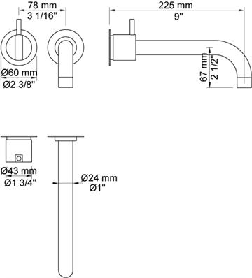 Vola 2121C Karbatteri med 225 mm tud  - Krom