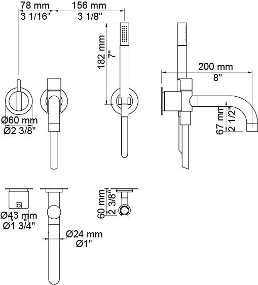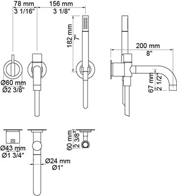 2141DT8AP = Greb NR21, 200 mm kartud med omskifter og håndbruser 040D, 2 stk. 60 mm dækrosetter 001, 60 mm dækroset 2001, holder for håndbruser T8.