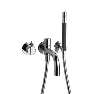 Vola Badekarbatteri - Et-grebsblander med kartud, håndbruser og holder i natur messing
