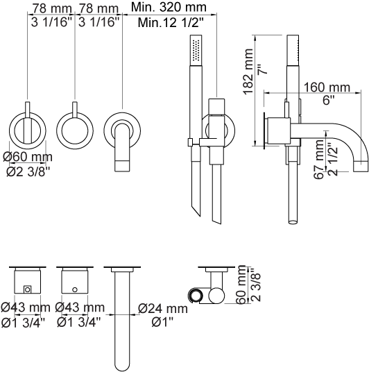 2411C-071AP = Greb NR21, omskiftergreb NR24G, 160 mm fast tud 010C, håndbruser og holder, med kontraventil 070, 3 stk. 60 mm dækroset 001, 60 mm dækroset 2001.