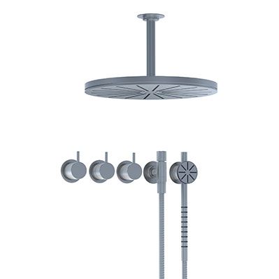 Vola 5471S-061A termostat brusebatteri til indbygning med lofthængt hovedbruser & T60 håndbruser - Vælg farve