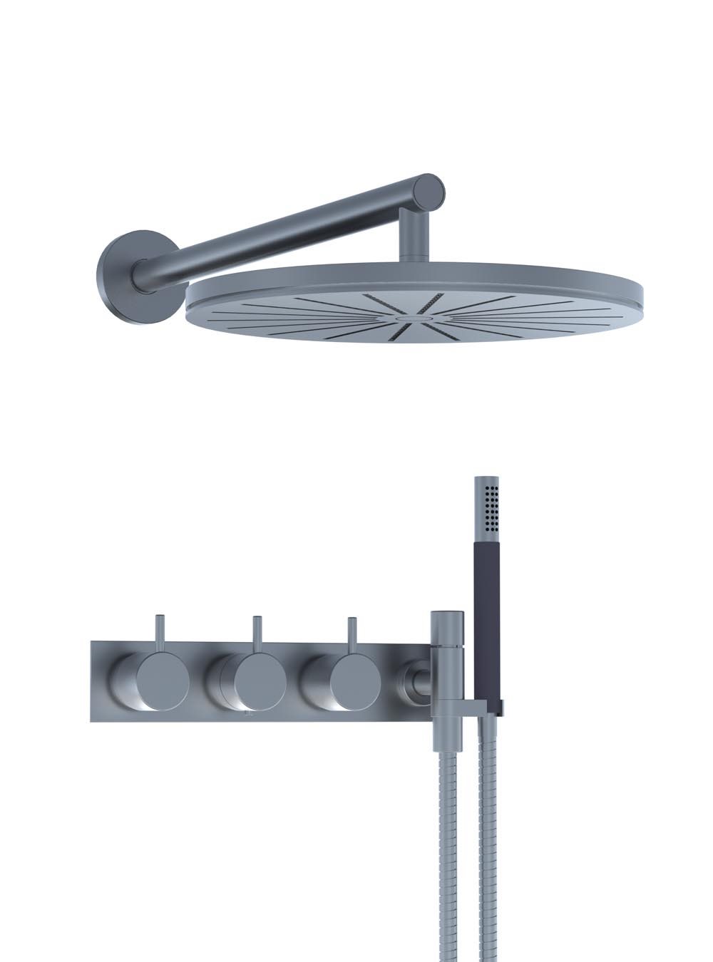 VOLA’s geniale og modulerbare brusekoncept giver dig mulighed for at sammensætte din egen personlige indbygningsbrusearmatur designløsning til bruseren ved, at kombinere indbygningsdel, greb, udløb, dækplade eller roset sammen med fx håndbrusere, hovedbrusere og sidebrusere.