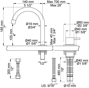 Hulstørrelse, blander: 40 mm, max. 43 mm.