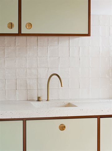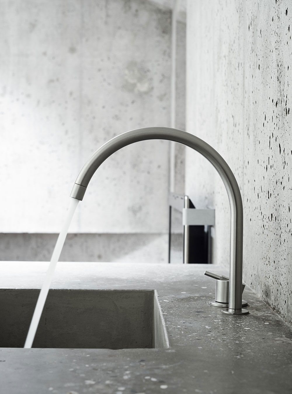 Vola 590H håndvaskarmatur - 265 mm høj - Natur messing (1), som smukt patinere med tiden.