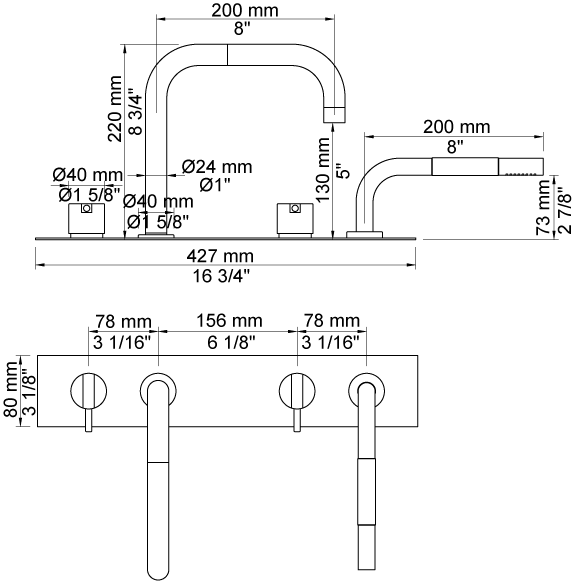 Vola BK10 badekarbatteri (fås i flere varianter) - Vola BK10A i krom