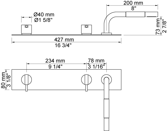 Vola BK3 badekarbatteri med håndbruser - Vola BK3 badekarbatteri i rustfrit stål
