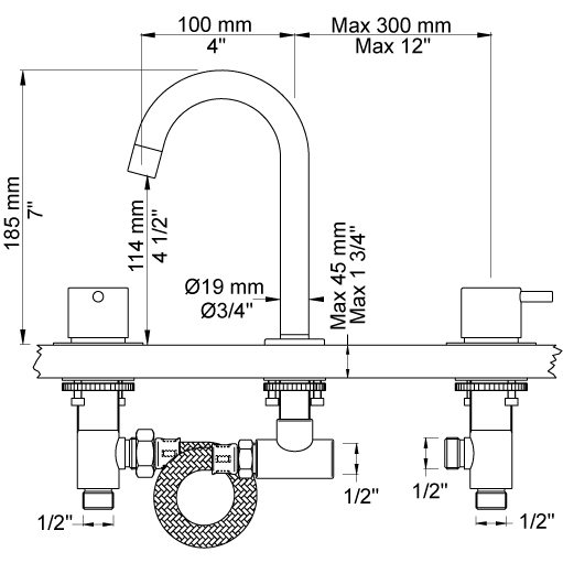 Vola HV8 håndvaskbatteri - Rustfrit stål