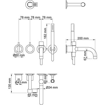 Vola kar-brusearmatur til indbygning med kartud, hånd-og hovedbruser. består af.: