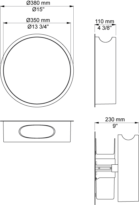 Vola RS3 påbygget affaldsbeholder Ø380mm 8 Liter - Affaldsbeholder hvid, ring krom