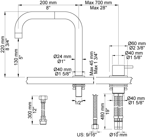Vola SC5 - 1-grebs karbatteri med dobbelt svingtud - I Rustfrit stål